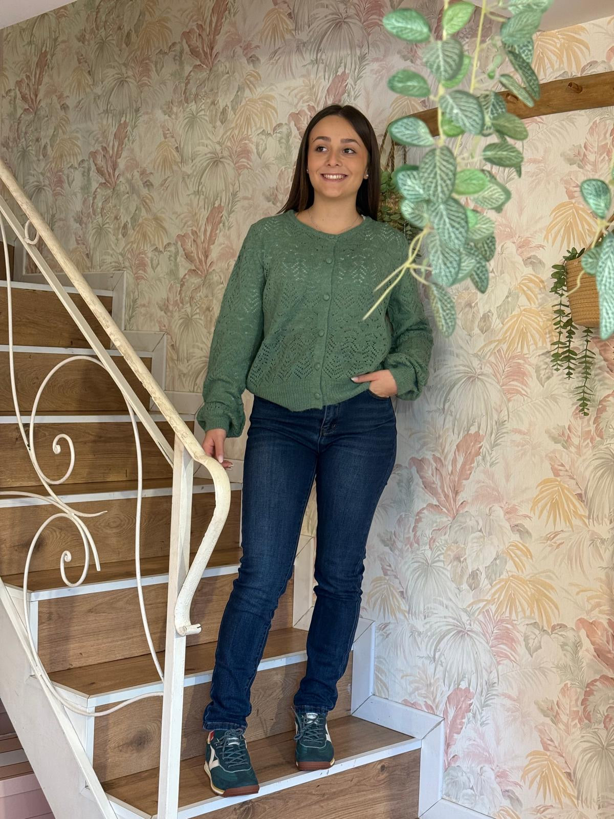 Morbido, leggero e dall’allure romantica, questo cardigan traforato è il capo ideale per completare i tuoi look con un tocco di eleganza senza rinunciare al comfort. La lavorazione aperta crea un delicato effetto vedo-non-vedo, mentre la mano soffice del filato avvolge con piacevole calore. Perfetto da indossare su top, abiti o camicie per un outfit versatile e femminile.