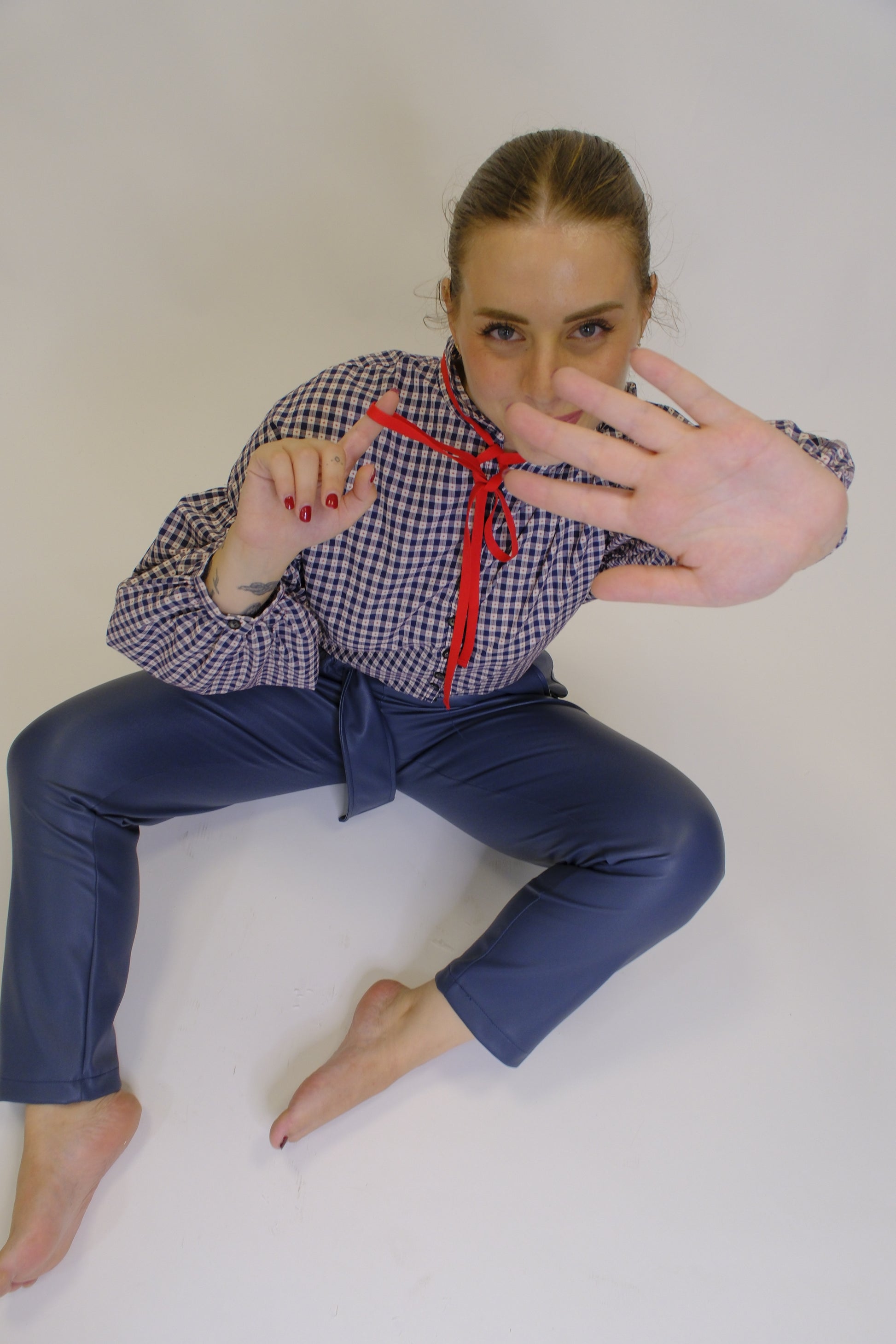 Camicia a Quadretti con Nastrino – Stile Romantico e Raffinato