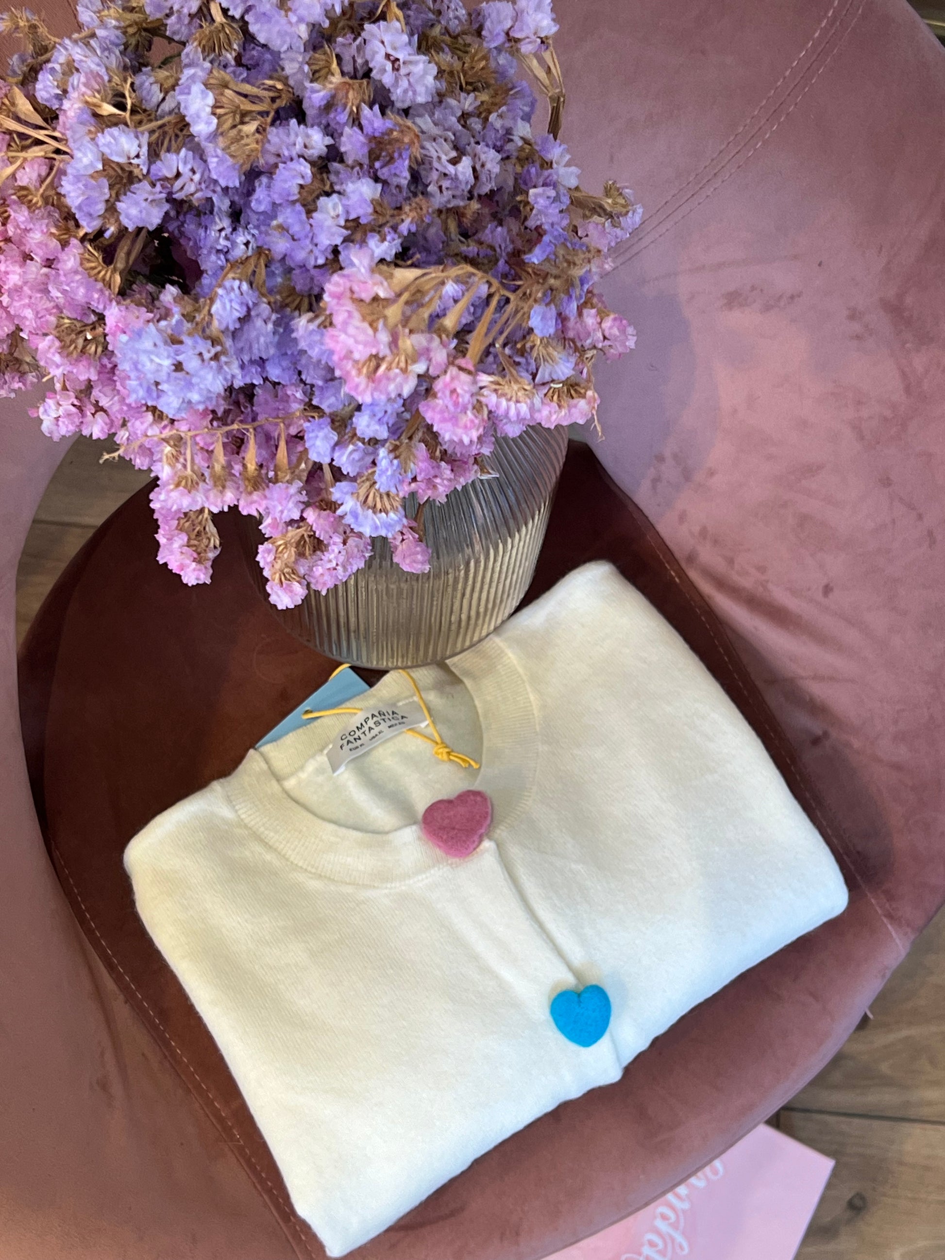 Cardigan Color Burro con Bottoni a Cuore – Compania Fantastica