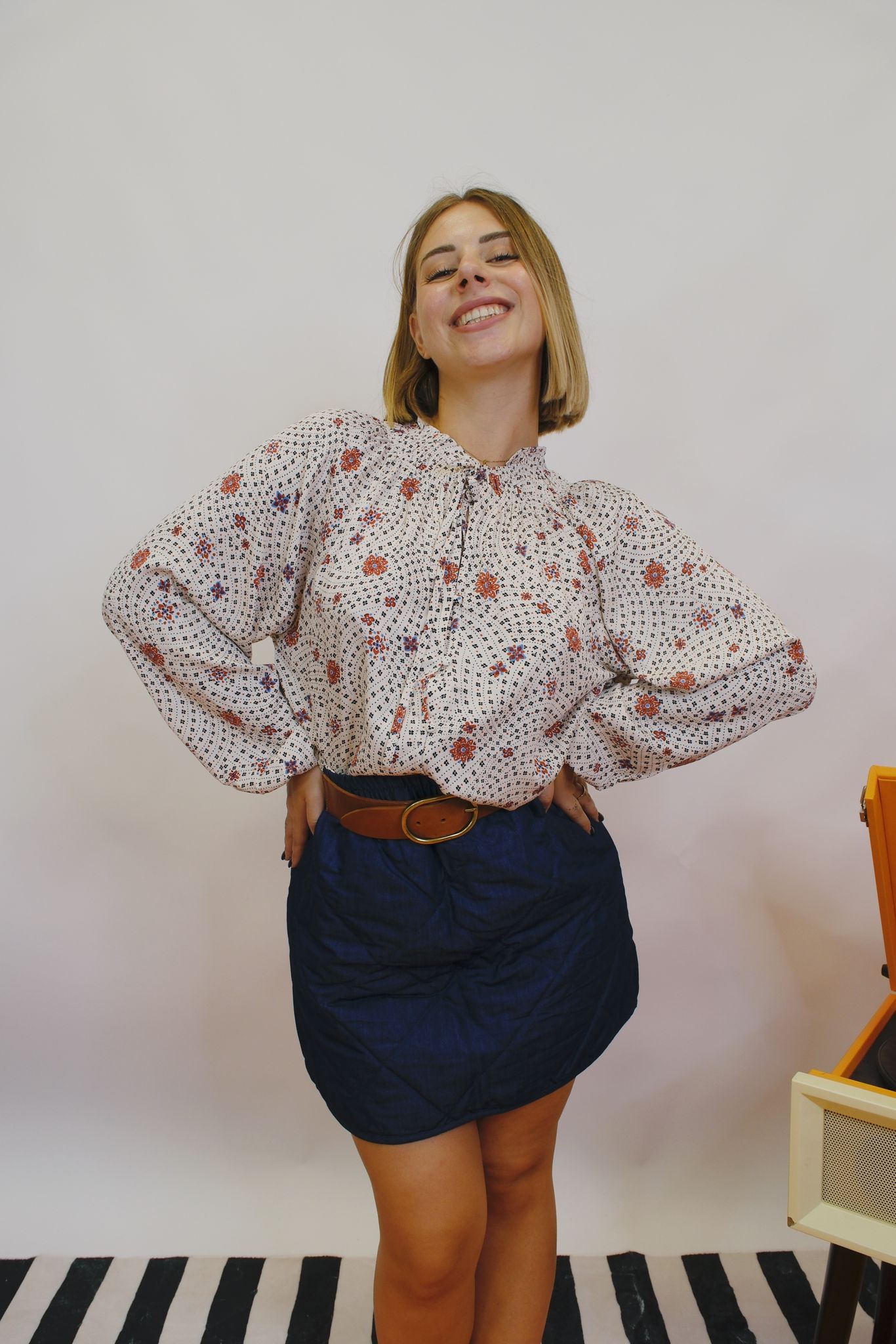 Una blusa dal fascino delicato che unisce romanticismo e comfort. Il colletto arricciato con laccetto regolabile aggiunge un dettaglio femminile e versatile, da lasciare morbido o da annodare in un fiocco, mentre il tessuto in pura viscosa offre leggerezza e piacevolezza al tatto. Realizzata in Italia, è il capo perfetto per valorizzare outfit sia casual che eleganti.