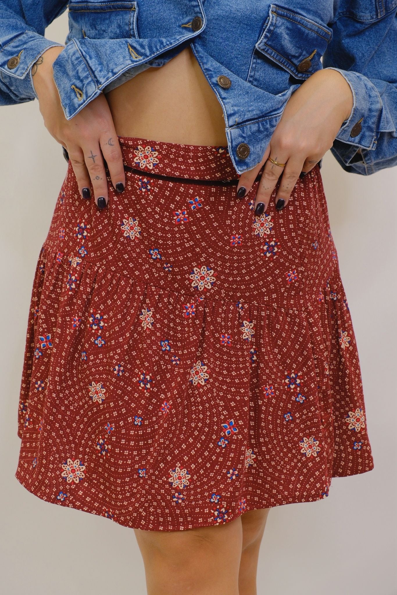 Minigonna elastico in vita fantasia floreale - RUGGINE