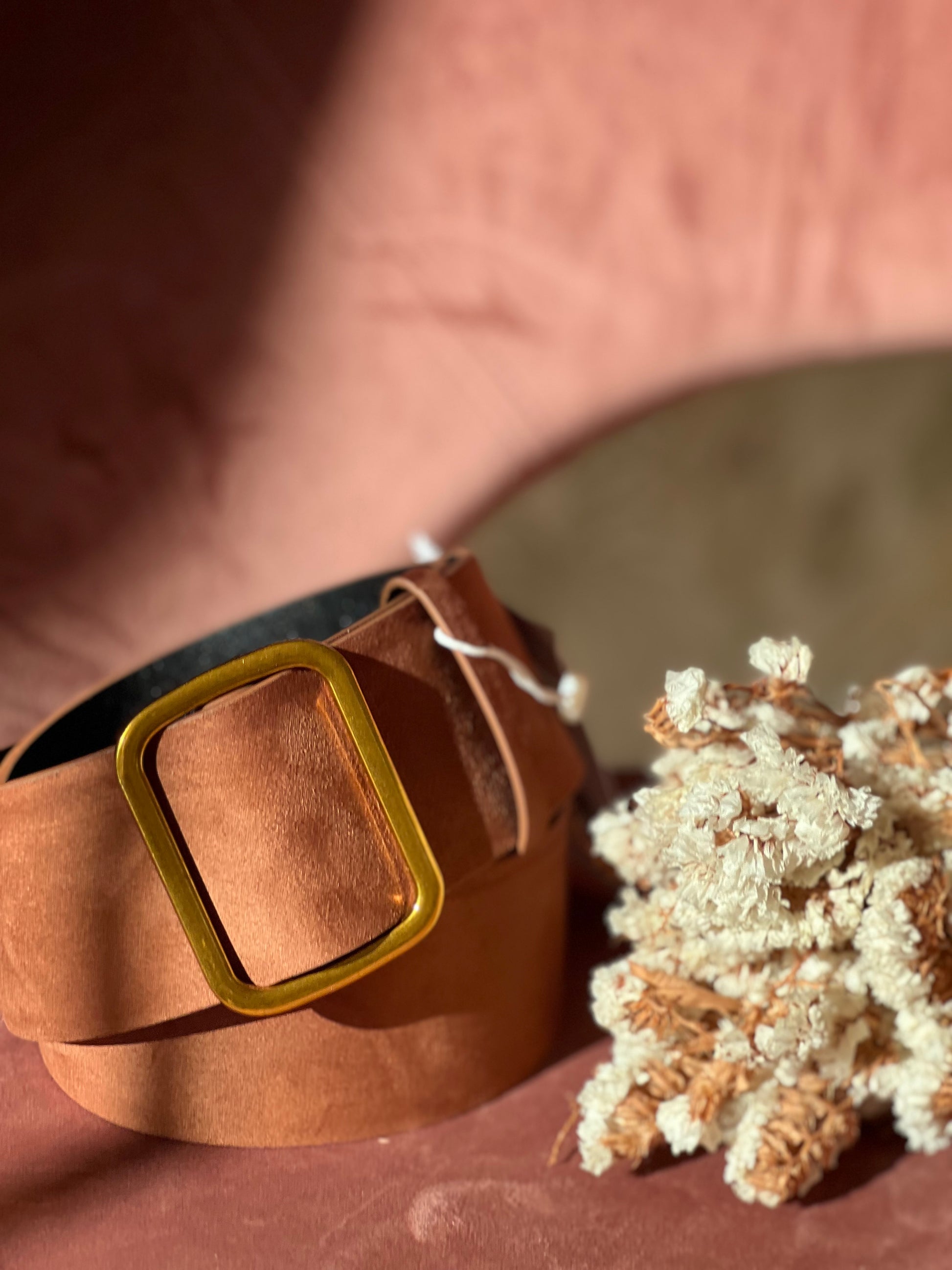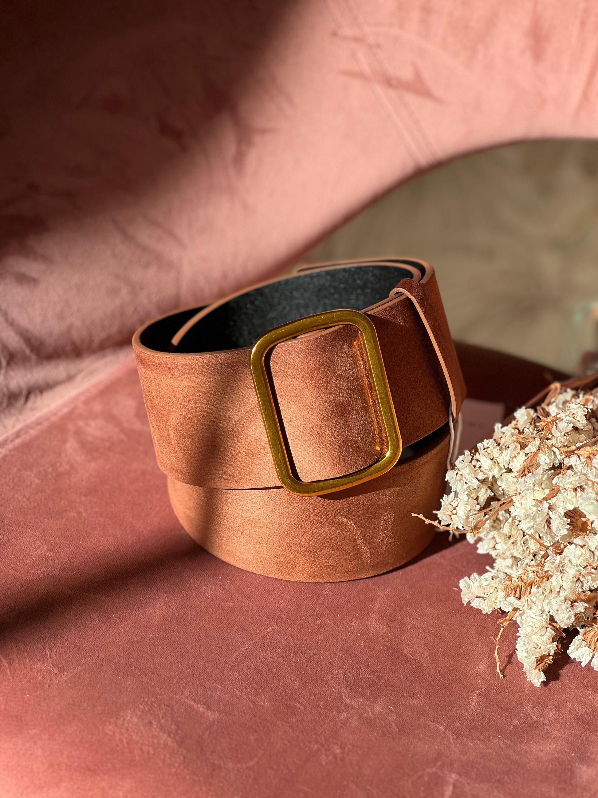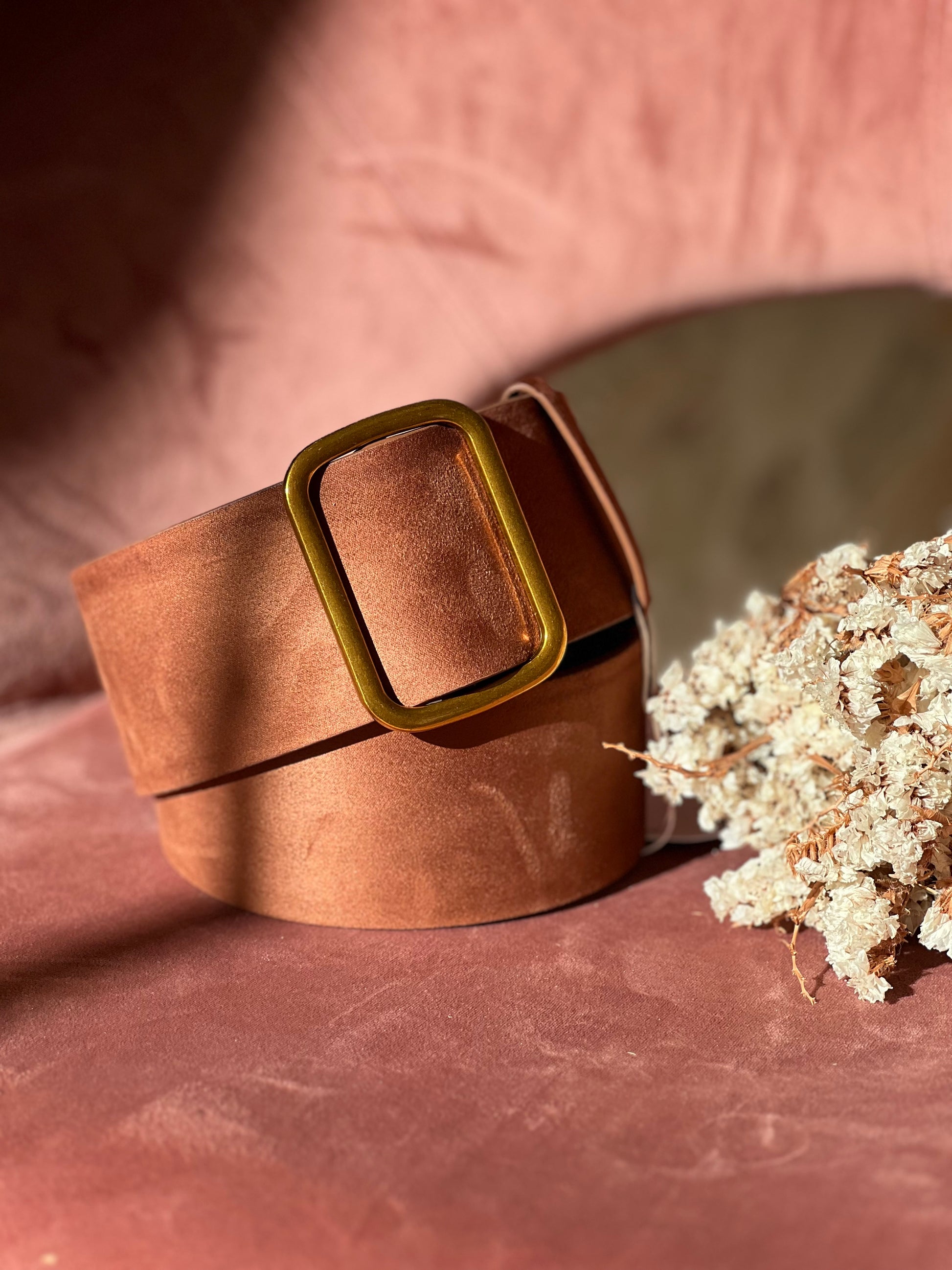 - Cintura sintetica effetto camoscio cammello