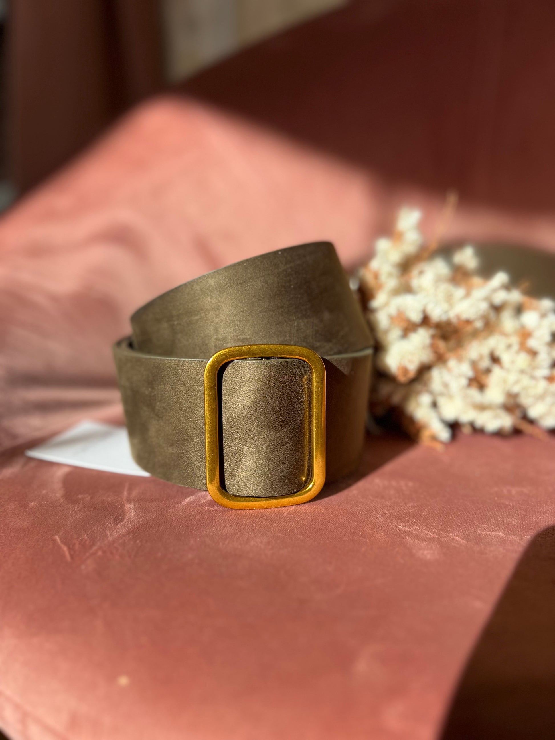 - Cintura sintetica effetto camoscio verde militare
