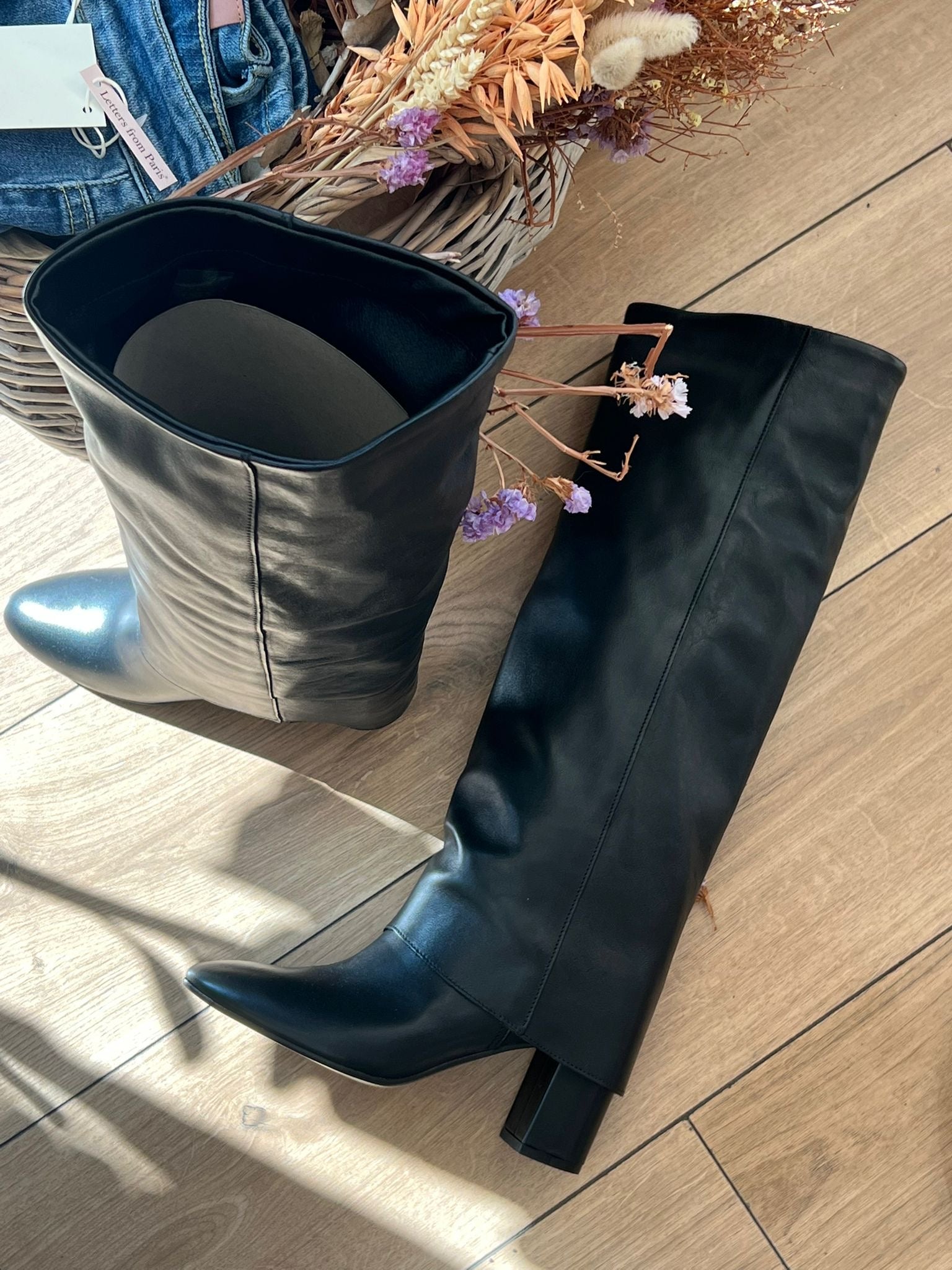 Stivali al ginocchio in pelle liscia di vitello nera – Made in Italy