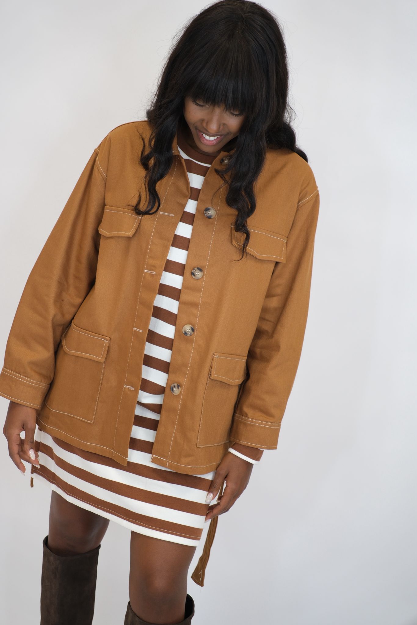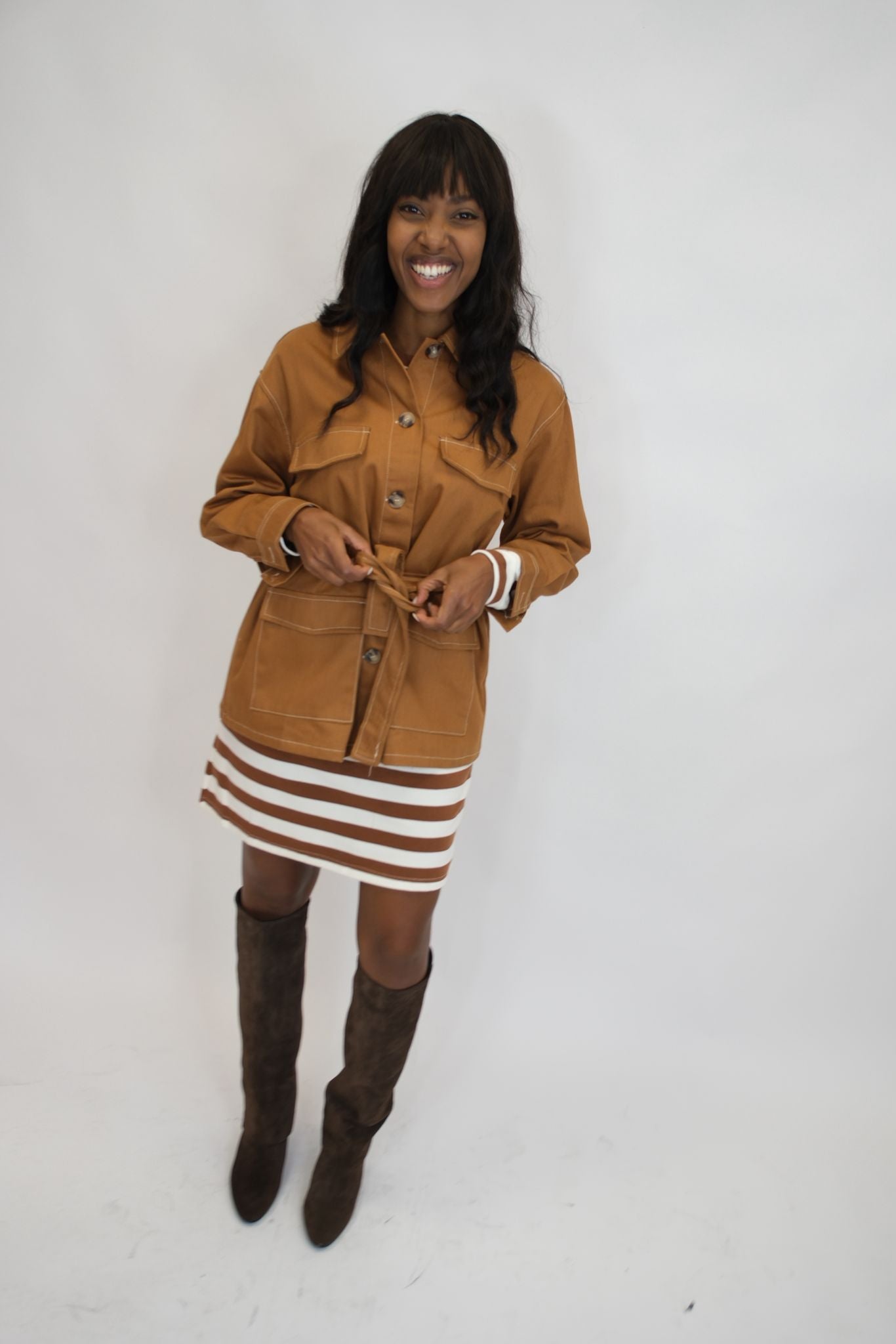Abito fantasia righe - MARRONE