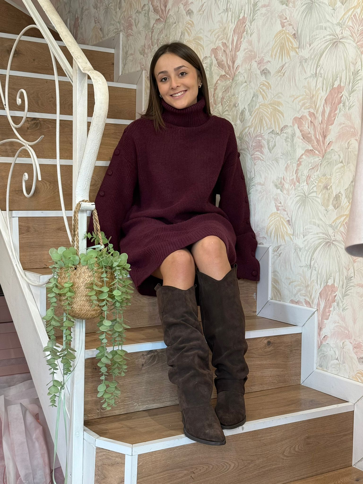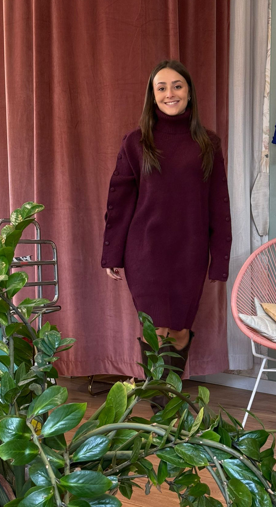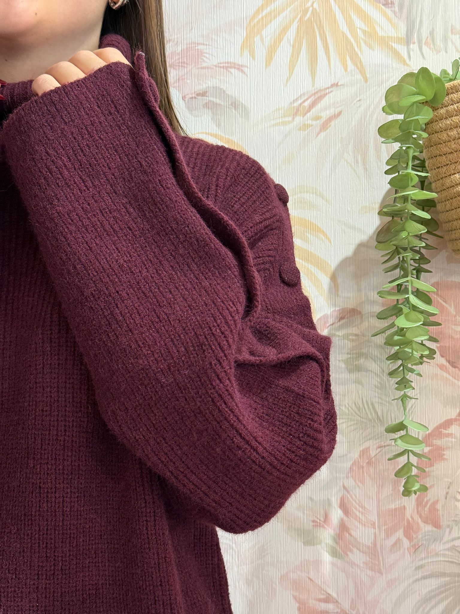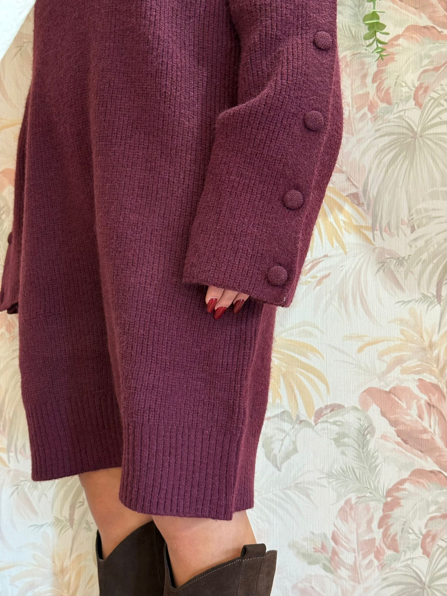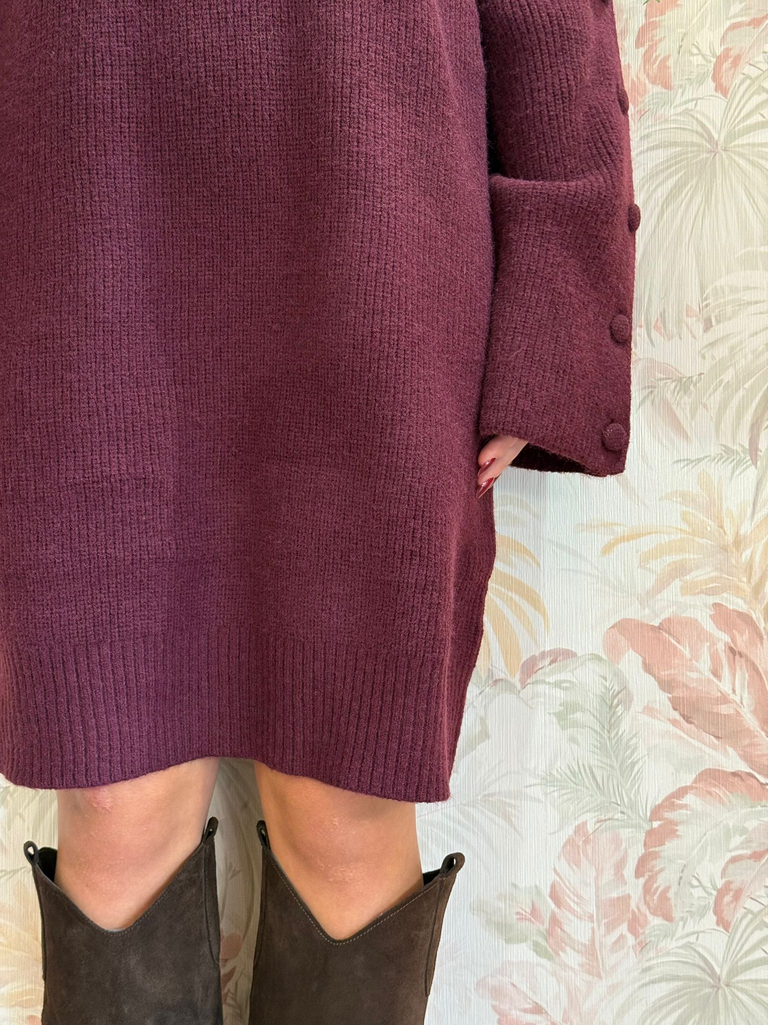 Abito in maglia over bottoni sulle maniche - BORDEAUX