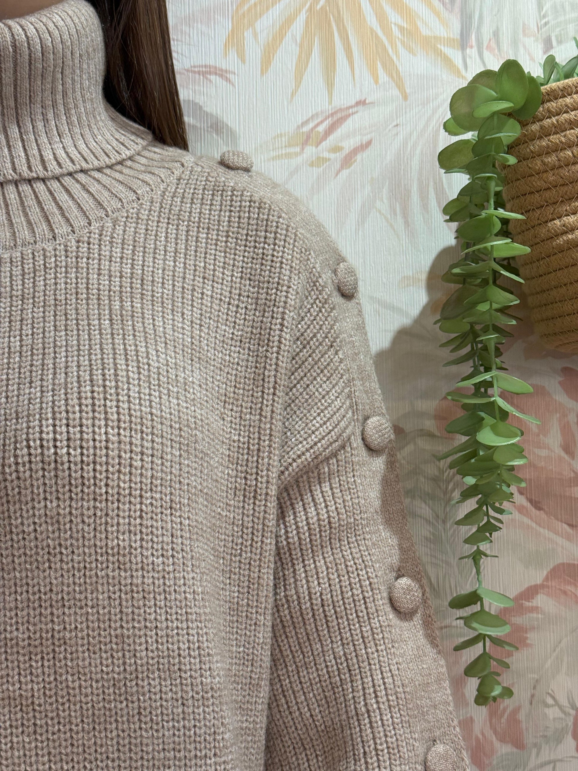 Abito in maglia over bottoni sulle maniche - TAUPE